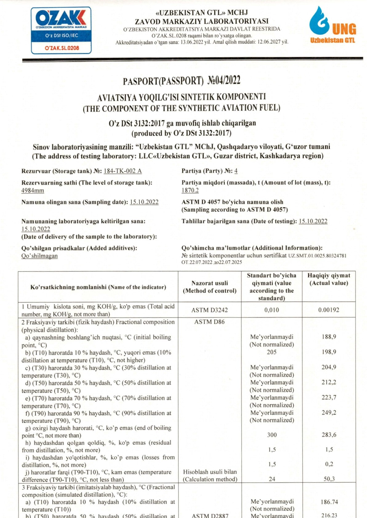 LPGSP jet fuel will make Uzbekistan one of the few producers of the most advanced aviation fuel in the world. Synthetic fuel is a feature of aviation, but LPGSP jet fuel has the potential to surpass anything achieved to date in terms of performance and air emissions. Thus, aviation is one of the high-value and sustainable global markets for LPGSP products.