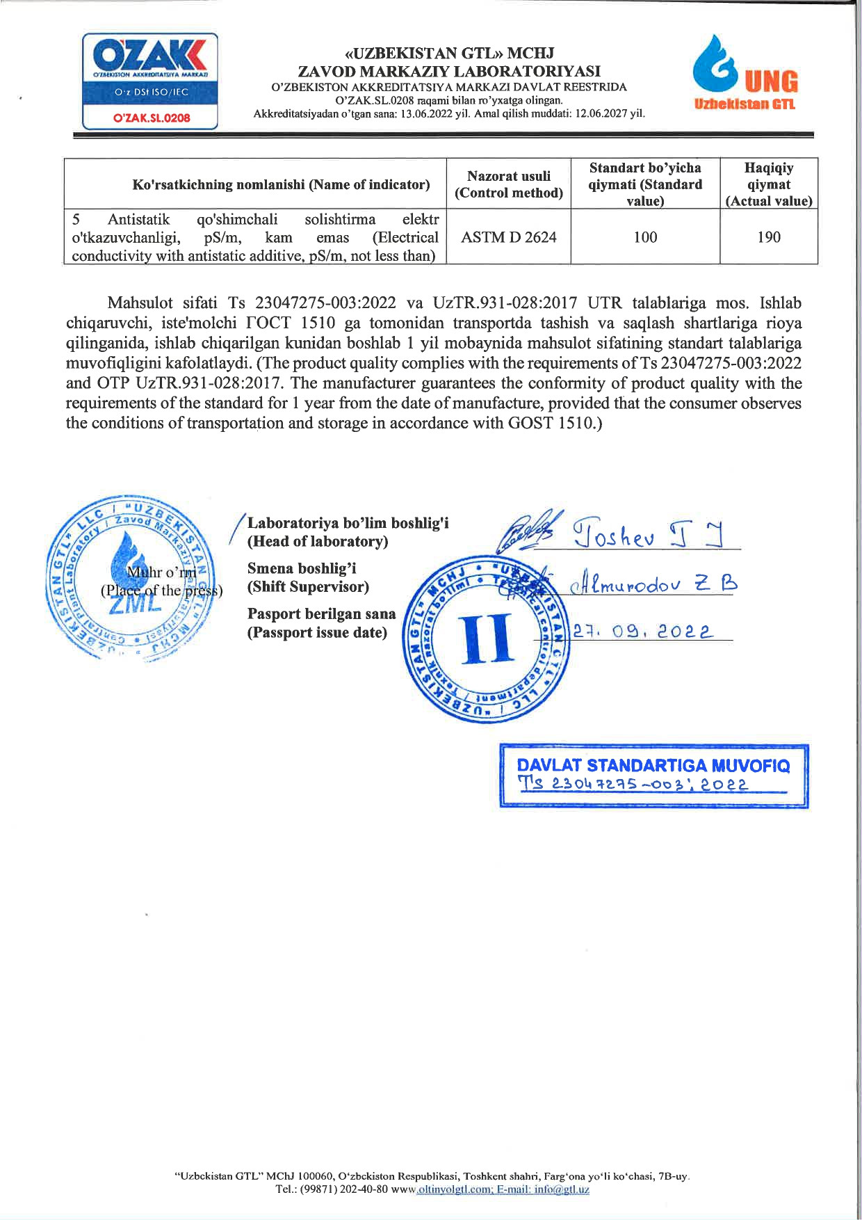 - Grade “A” Synthetic naphtha with the paraffin content of up to 70% and ultra-low sulfur content